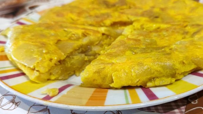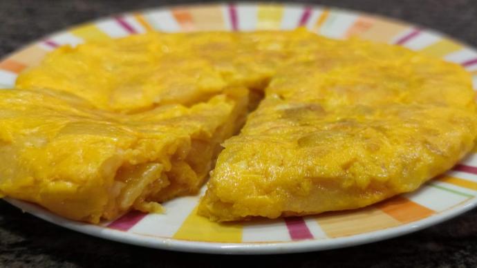 La tortilla de patatata agria es simplemente excelente, con color y textura inmejorables, buena conservación del sabor y ternura, incluso fría!